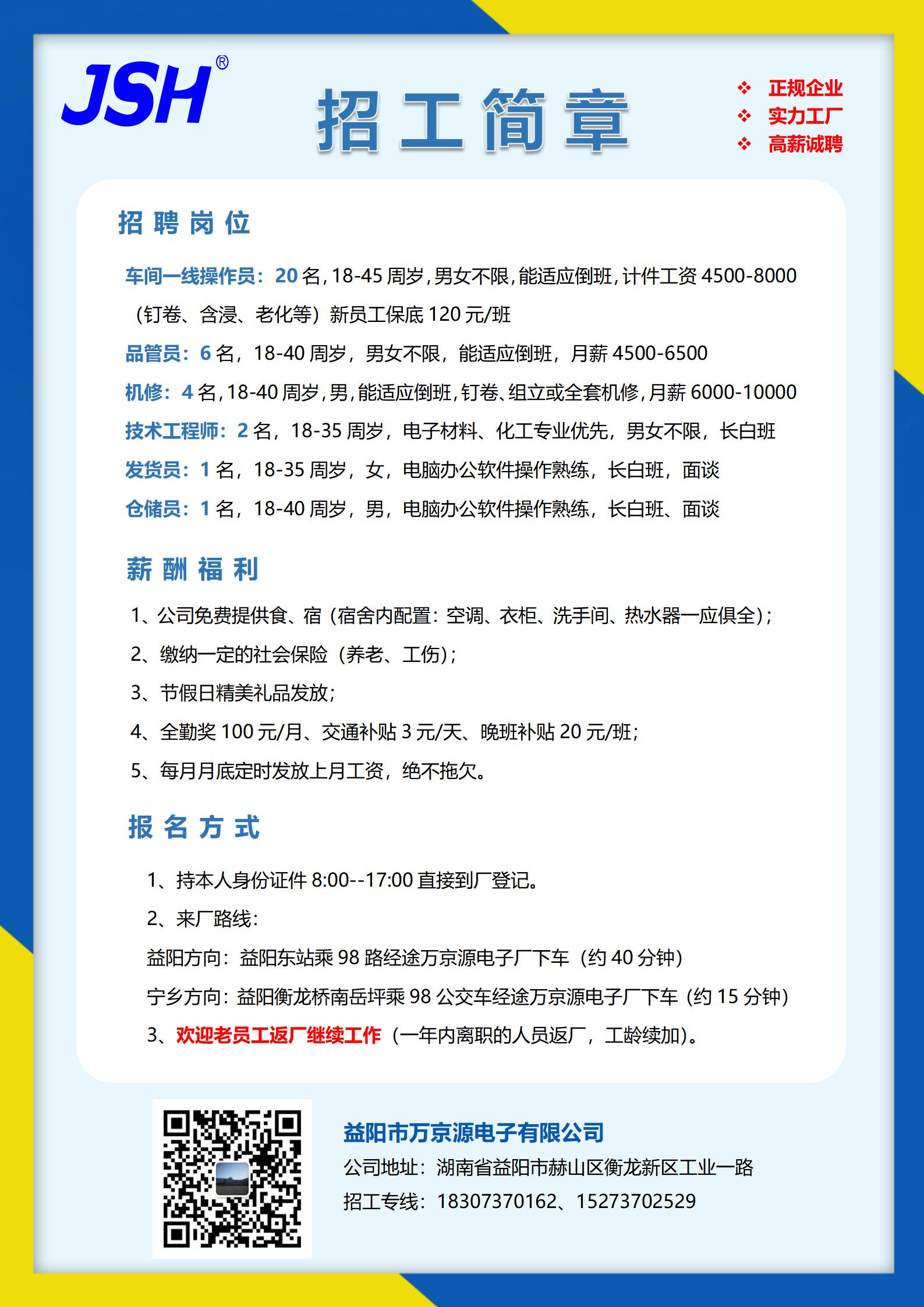 Description:萬(wàn)京源電子招聘 各大崗位,2024激烈來(lái)襲,聯(lián)系電話:18307370162